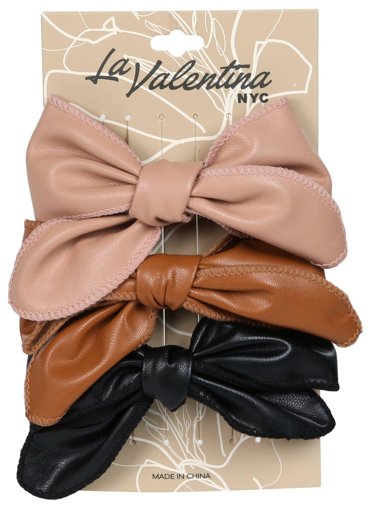 3 Pk Faux Leather Bow Hair Clips