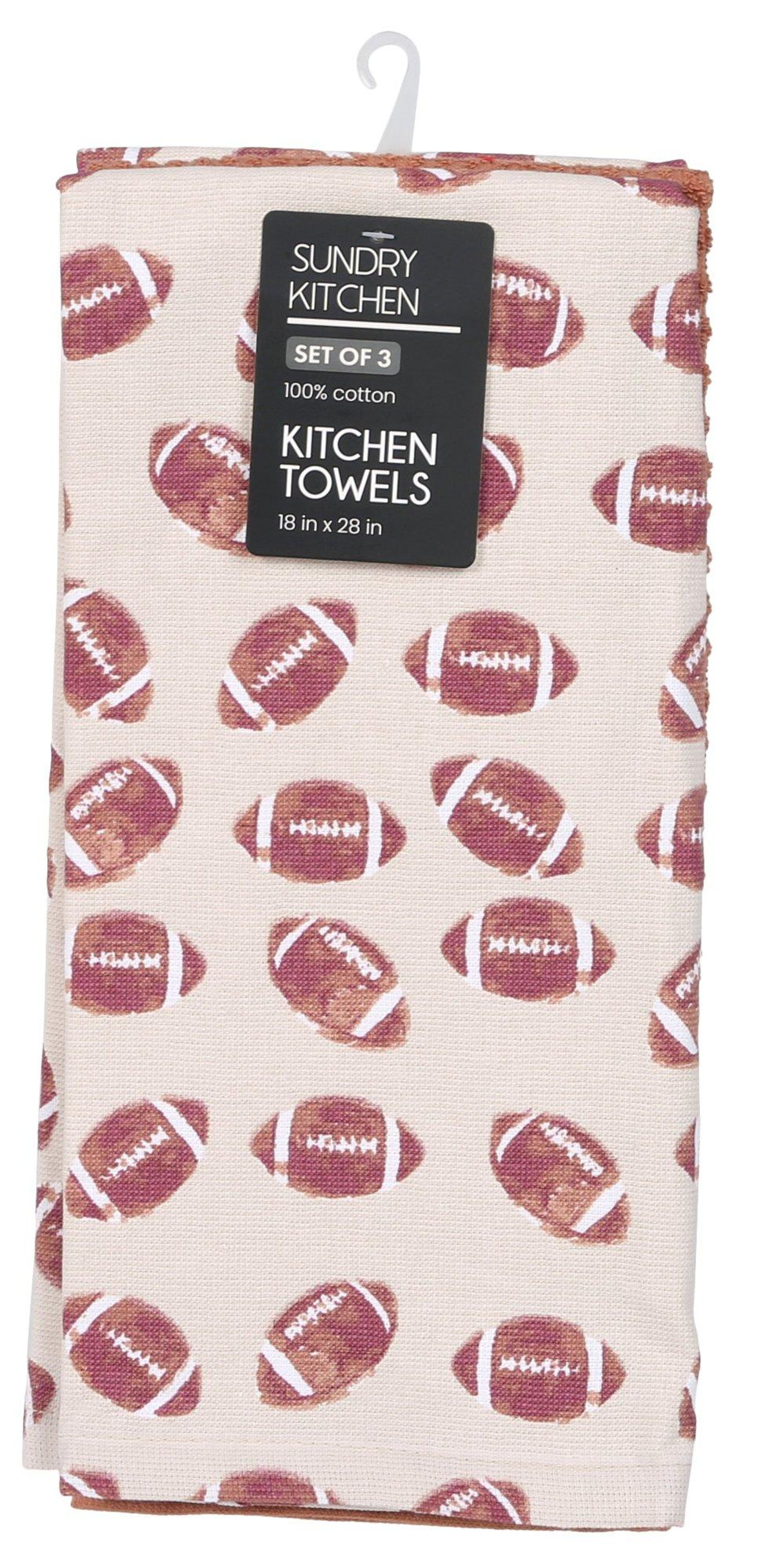 3 Pk Football Print Kitchen Towels