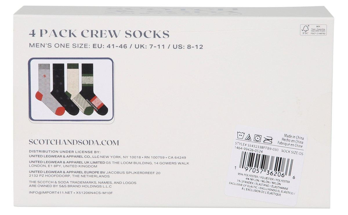 4 Pack Crew Socks