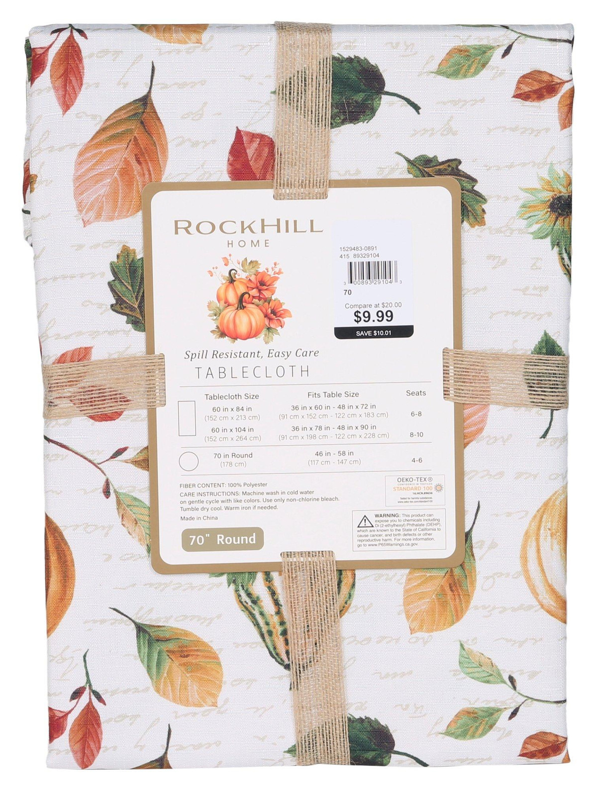 70 in Harvest Floral Pumpkin Print Tablecloth