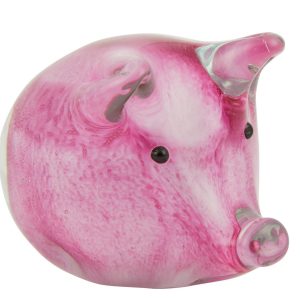 Glass Pink Pig Paper Weight Accent