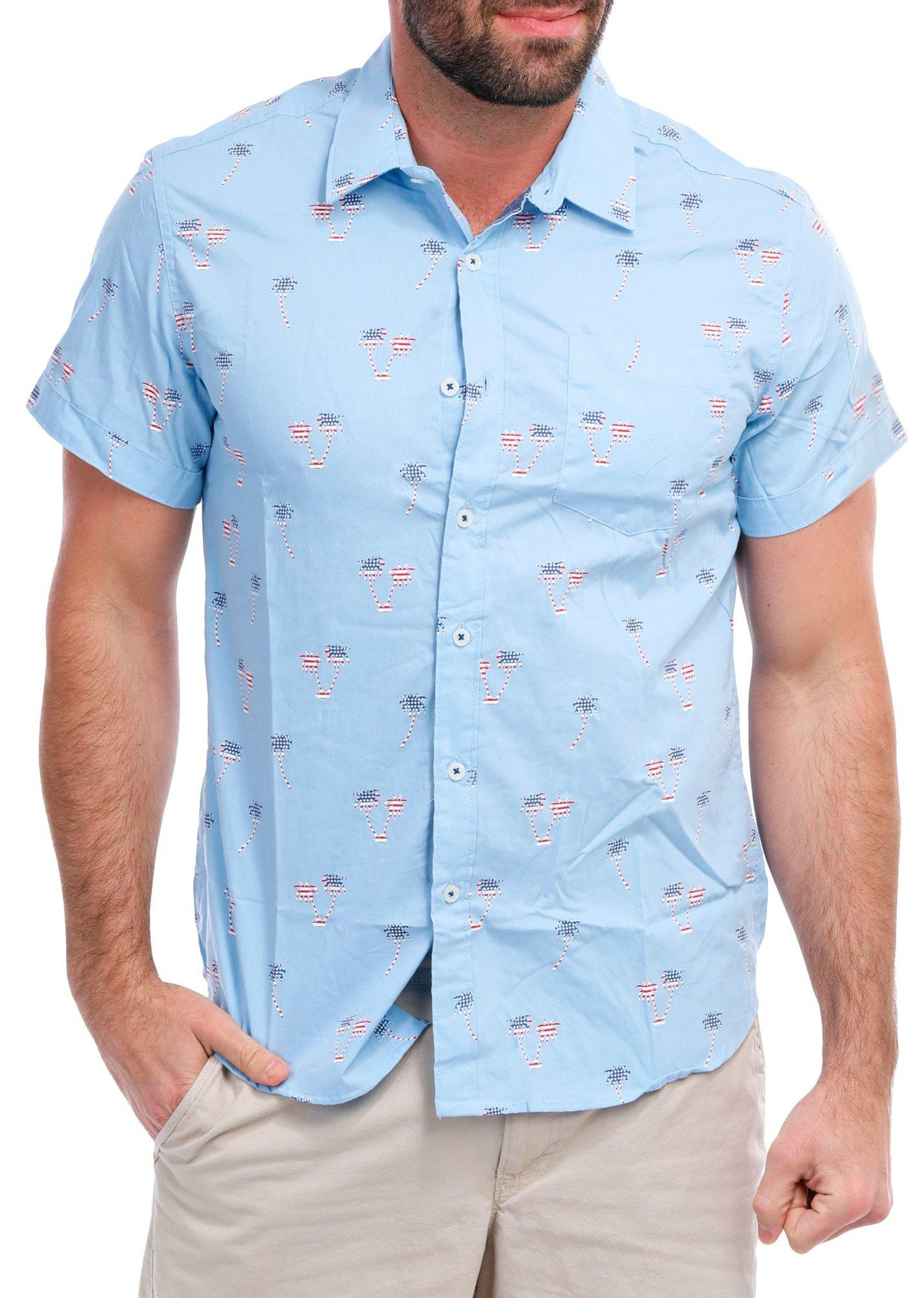 men's American Flag Palm Tree Button Down Shirt