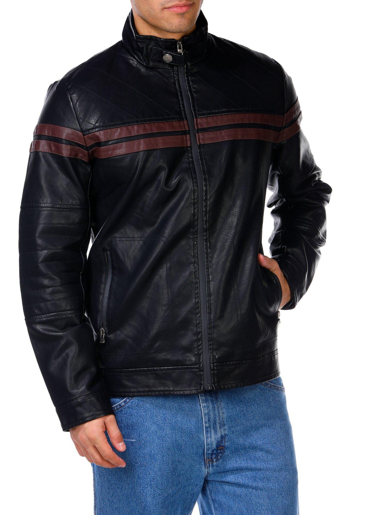 Men's Faux Leather Double Stripe Moto Jacket