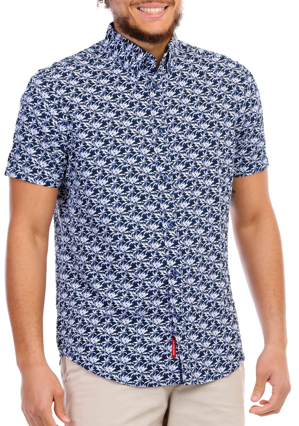 Men's Palm Leaf Print Button Down Shirt