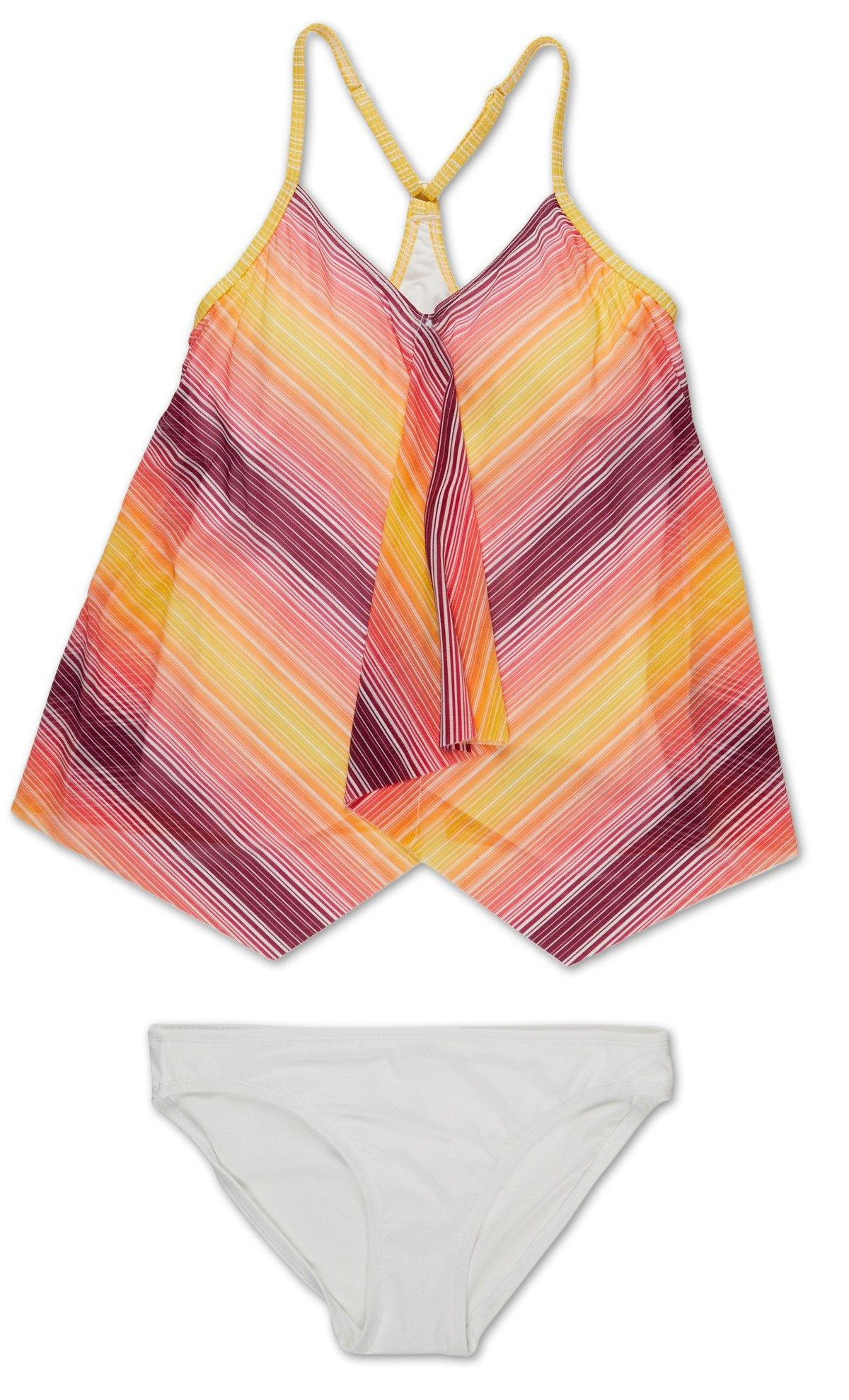 Women's 2 Pc Pleat Stripe Tankini Swimsuit