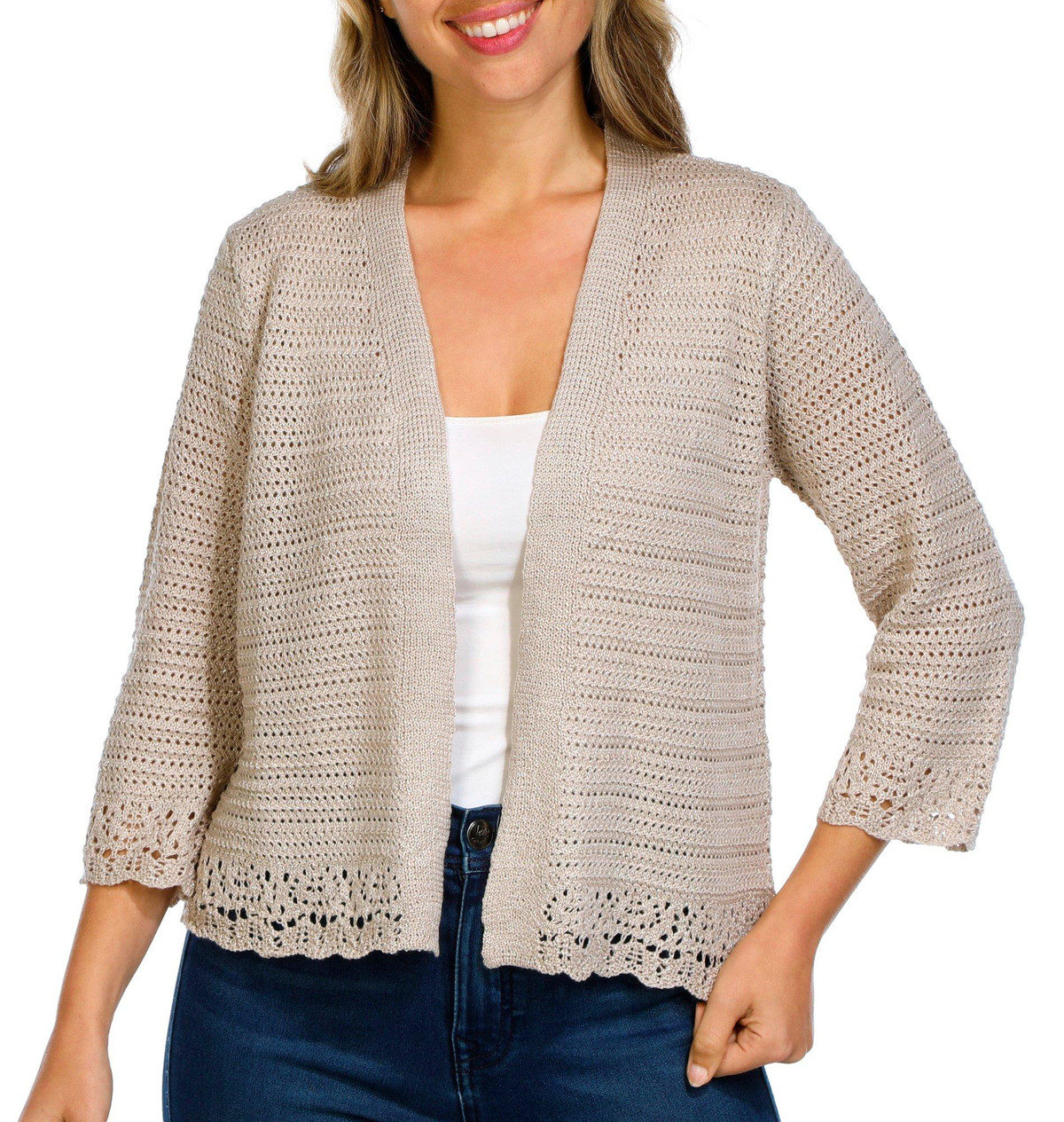 Women's 3/4 Sleeve Metallic Cardigan