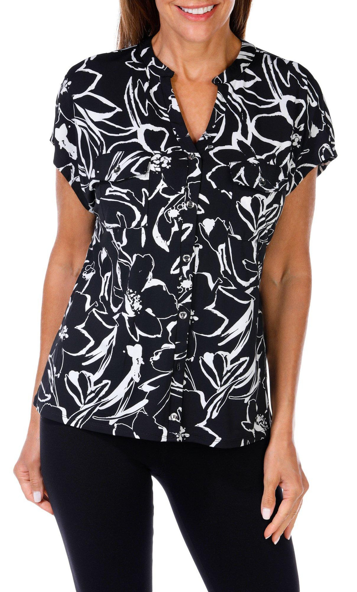Women's Floral Print Button Front Top