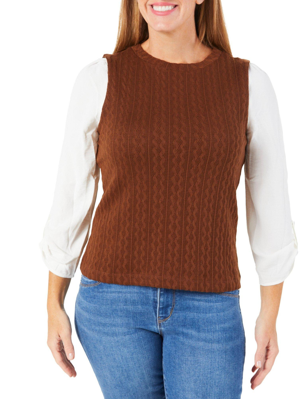Women's Knit2Woven Layered Look Top