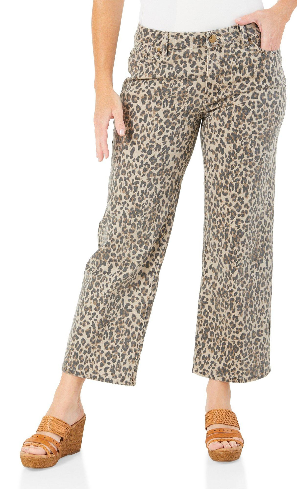Women's Mid Ride Leopard Wide Leg Jeans