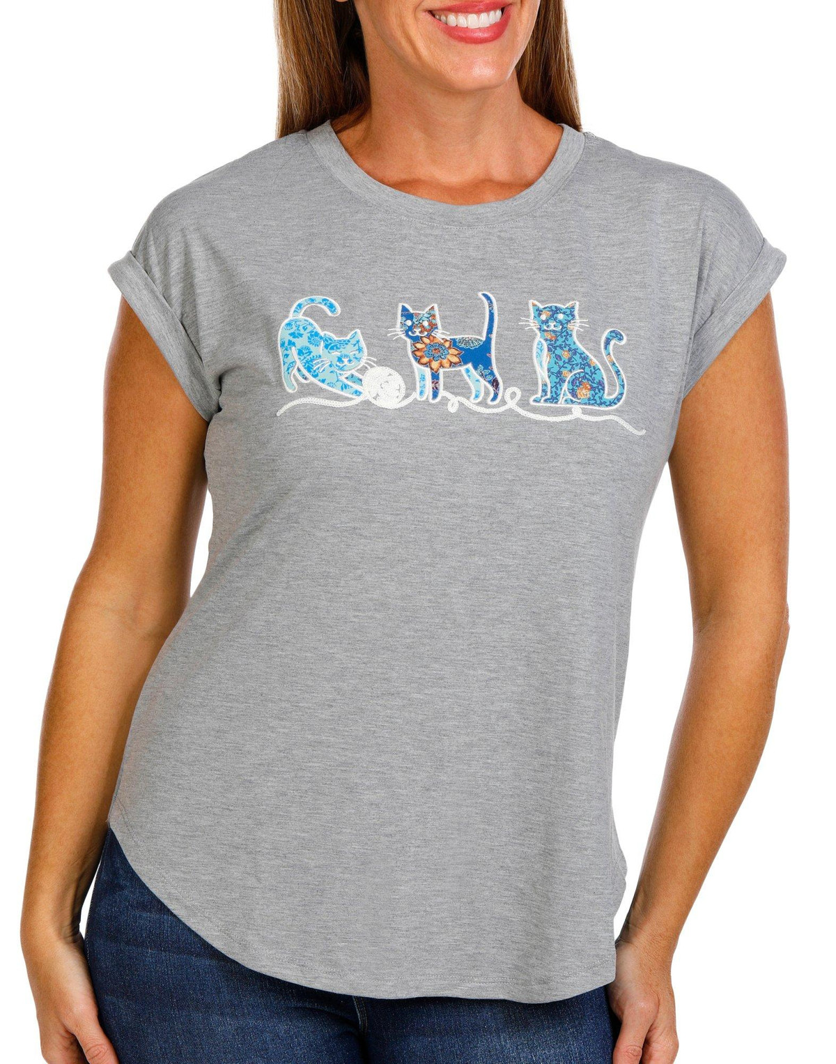Women's Petite Playful Cats Embroidered Top