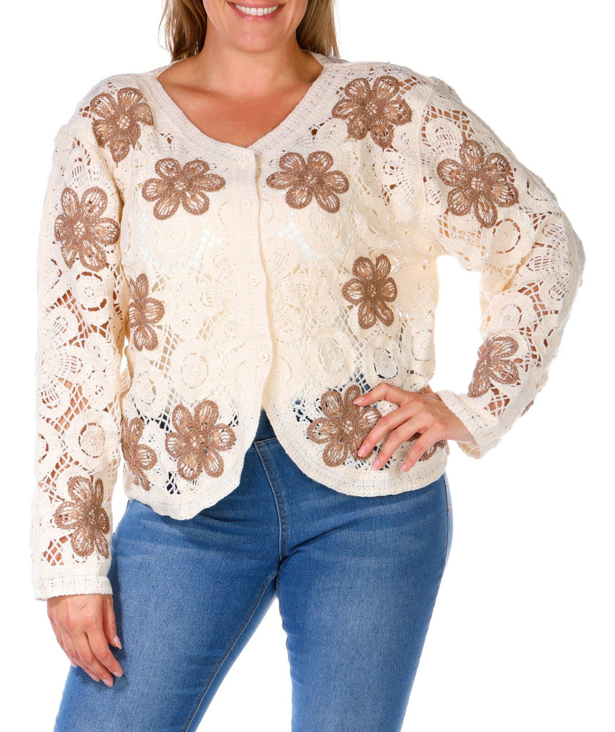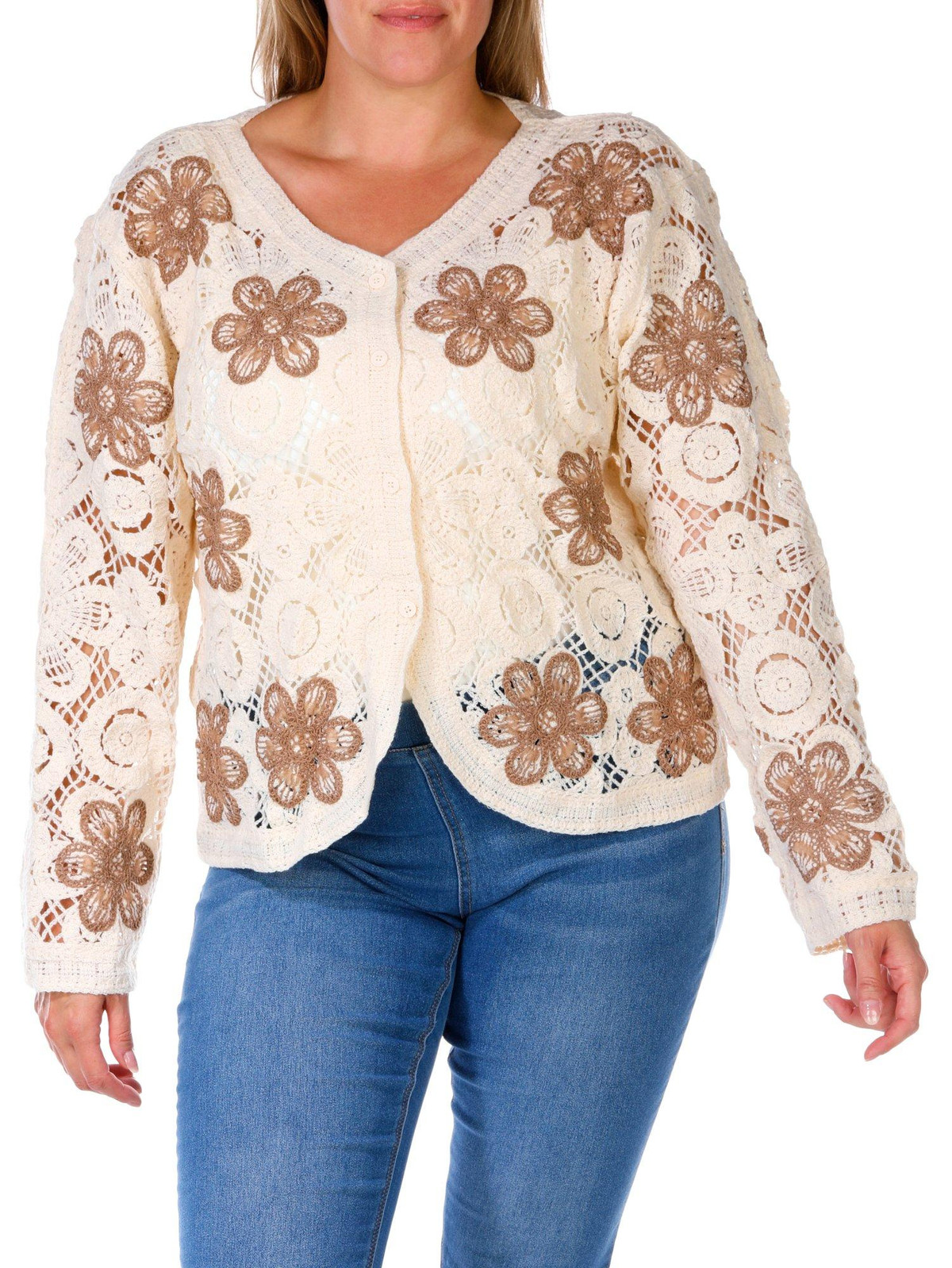 Women's Plus Floral Crochet Top
