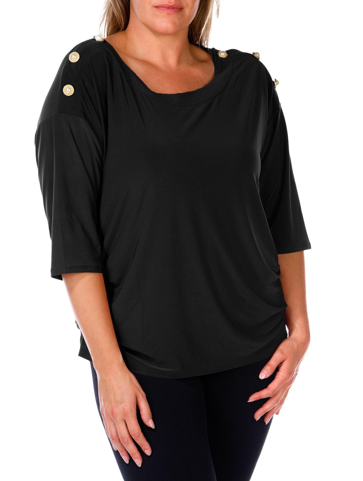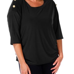Women's Plus Solid Button Shoulder Top