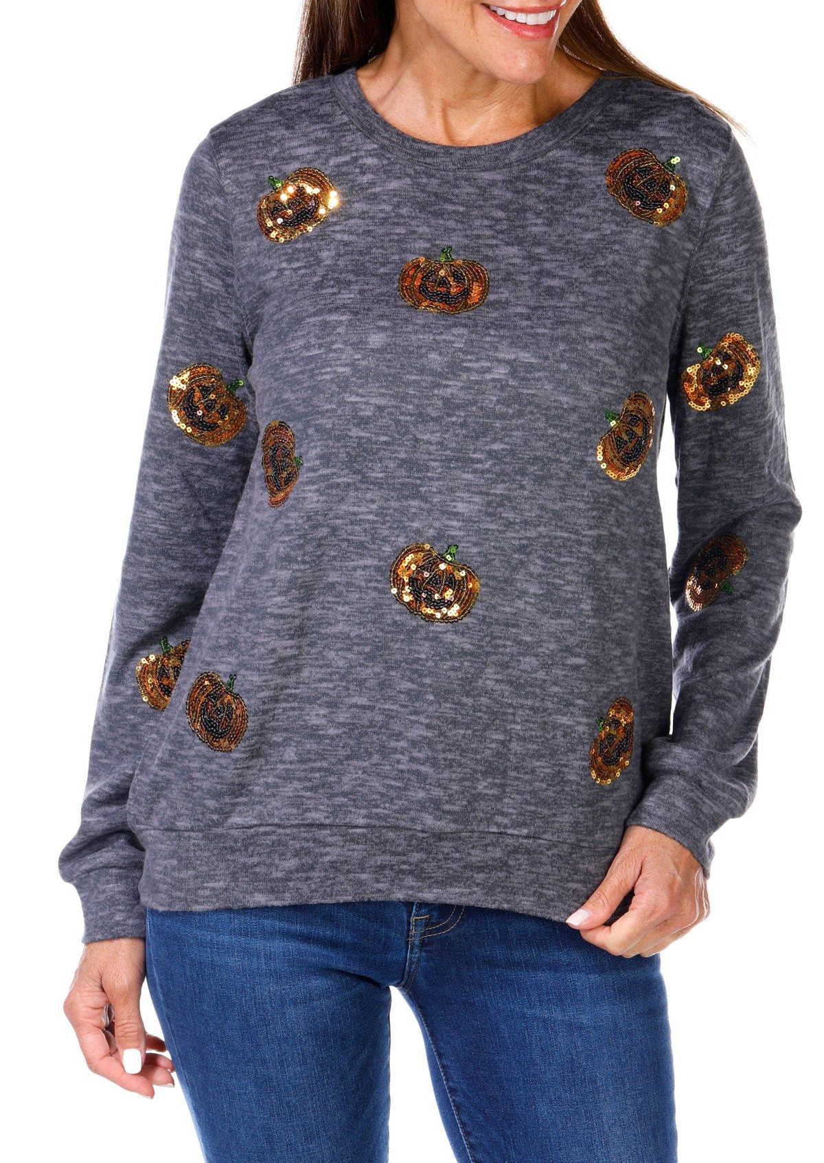 Women's Sequin Jack-o'-lantern Top