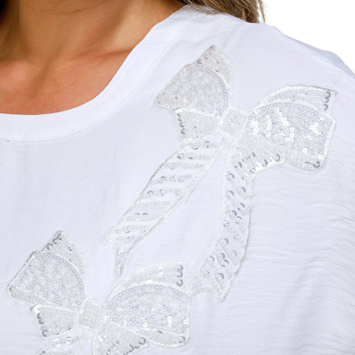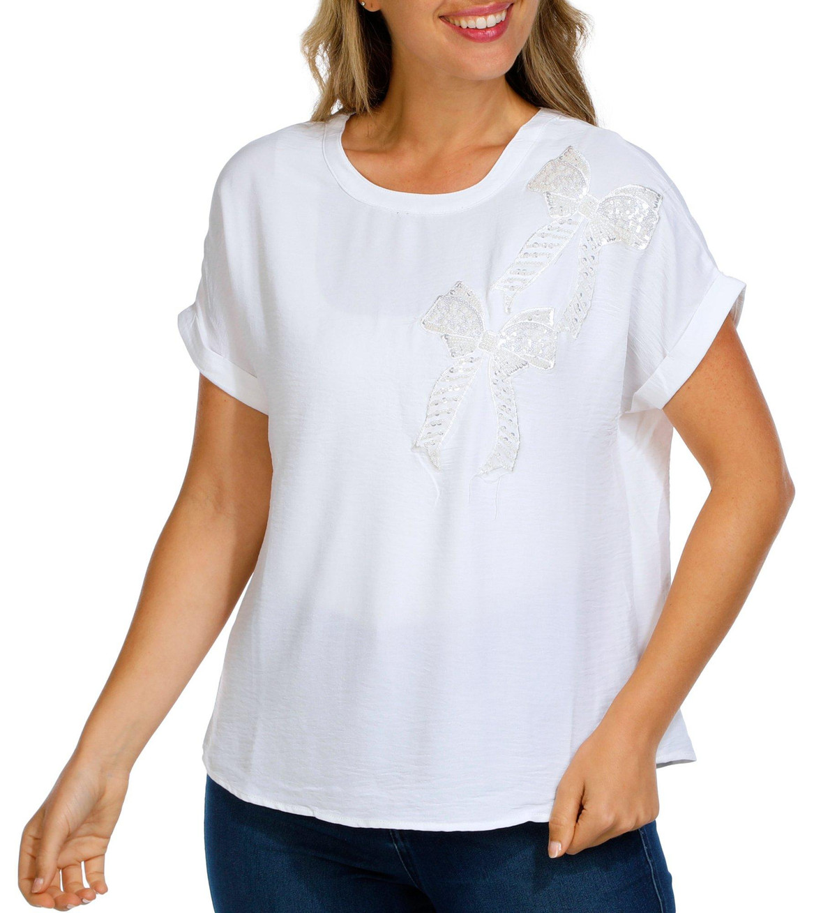 Women's Short Sleeve Bow Plique Top