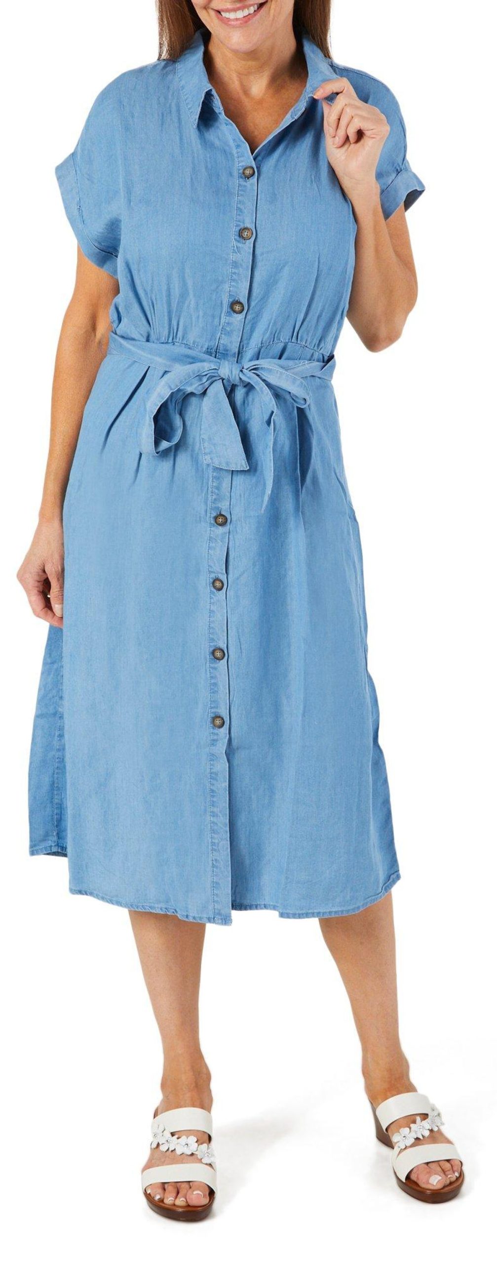 Women's Short Sleeve Button Down Shirt Dress