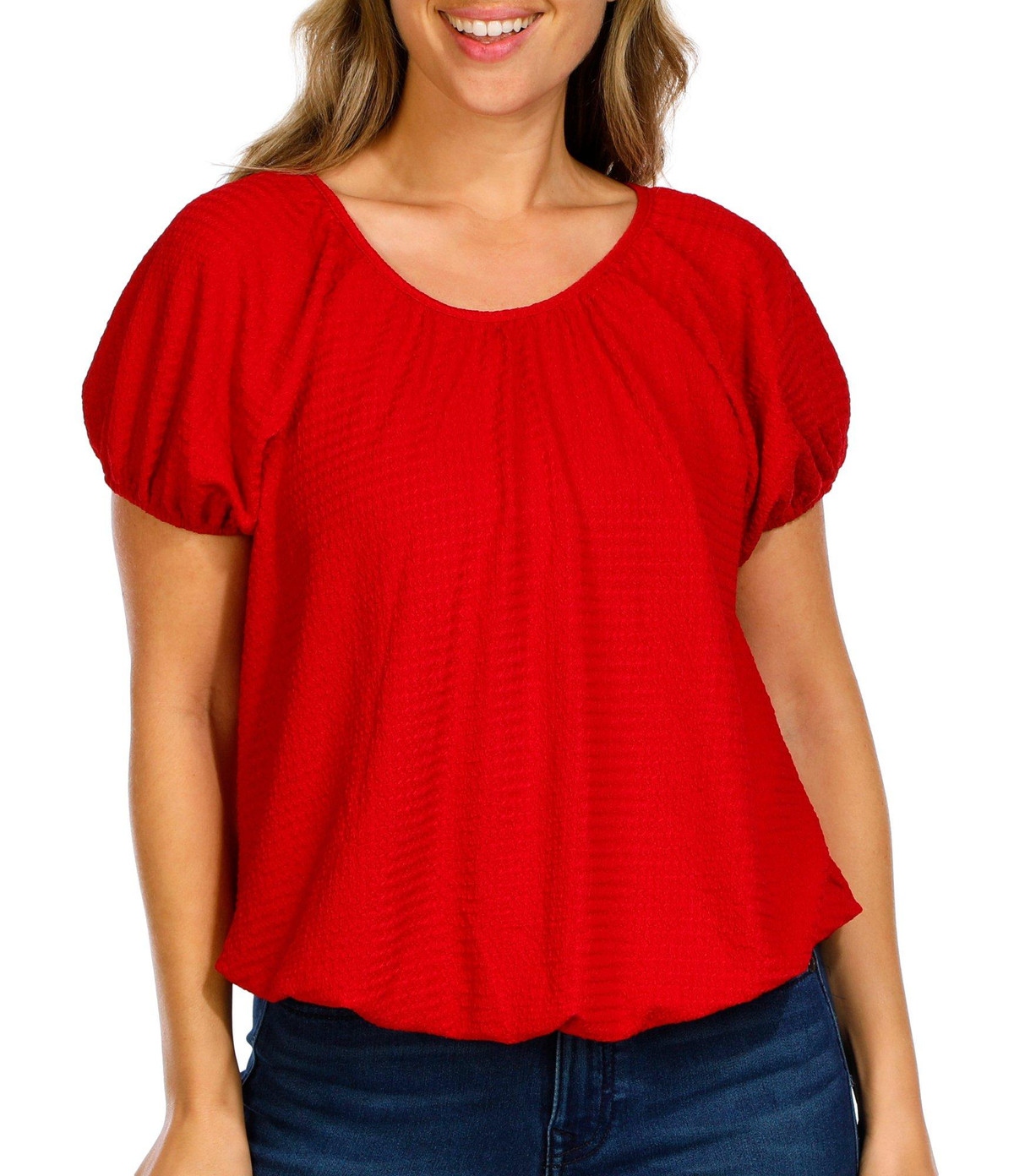 Women's Solid Bubble Hem Short Sleeve Top
