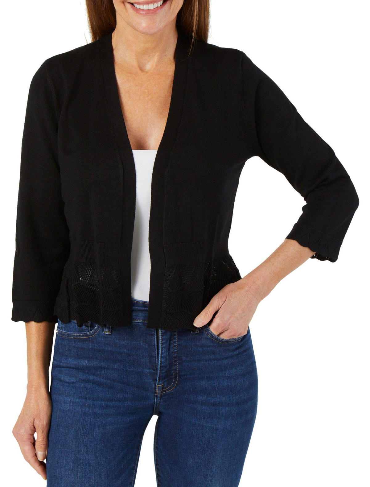 Women's Solid Perforated Open Front Cardigan